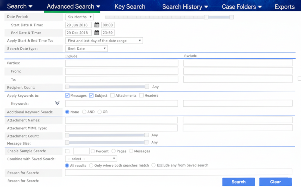 Yes. EntrustedMail offers fully featured eDiscovery software that integrates with archives. It allows you to search, tag, and export your messages immediately using intuitive filters, including sender, recipient, date range, keywords, and attachment format.