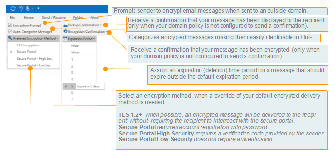 Yes. EntrustedMail works seamlessly with Microsoft Outlook, adding an easy “Encrypt” button to the normal workflow of email. Users can quickly send secure messages without needing to learn new software or adjust their routines. This add-in also offers security status indicators for encryption as well as delivery confirmations and expiration control, giving the user confidence that each email is in compliance with corporate security guidelines.